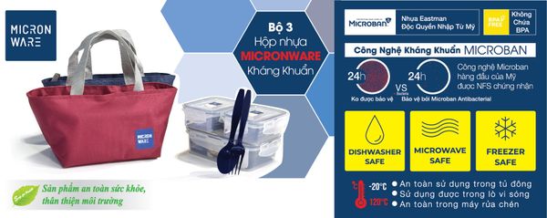 Microban là công nghệ tiên tiến nhất của Mỹ hiện nay, giúp sản phẩm có tính năng kháng khuẩn Anti-bacterial tích hợp suốt vòng đời sản phẩm. Tính năng kháng khuẩn giúp cho thực phẩm tươi lâu hơn, hạn chế nấm mốc, chống bám mùi.