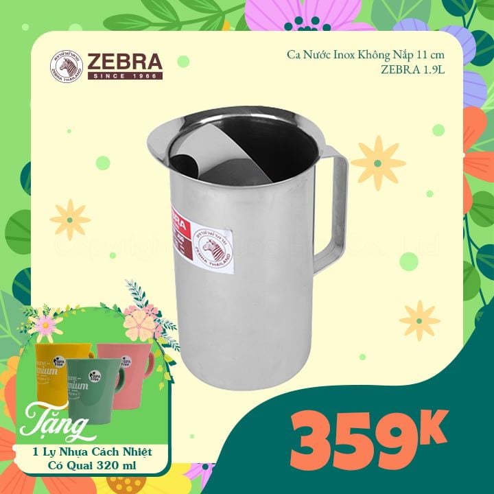 Tên sản phẩm: Ca nước Inox không nắp 11cm (1.9L) - 115011Mã sản phẩm: 115011Dung tích: 1.9LThương hiệu: ZebraChất liệu: Inox SUS304Công dụng: chứa đựng nước uống các loạiChi tiết: Miệng bình lớn, dễ dàng bỏ các loại thức uống, đá, trái cây, thạch...Nắp inox chặn đá.Quai cầm chắc chắnThiết kế hiện đại, bắt mắtĐựng được các...