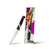 Tên sản phẩm: Dao thái răng cưa cán nhựa 155DSMã sản phẩm: 155DSThương hiệu: KiwiChất liệu: inox SUS420J2Công dụng: Gọt tỉa thực phẩm các loạiChi tiết: Lưỡi dao sắc bénThiết kế bền chắc.Màu sắc nổi bật.Cán cầm chắc chắn, vừa tay.Hướng dẫn sử dụng:Vệ sinh trước và sau khi sử dụngKhông làm rơi hay...